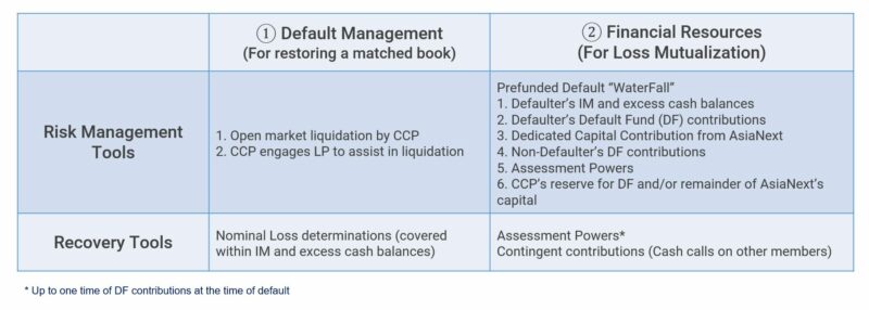 Upon the default of a Member, AsiaNext will apply the Prefunded Default Waterfall and Default Management Tools to recover to normal service. The objective of the Default Fund is to maintain systemic stability and protect non-defaulting member.